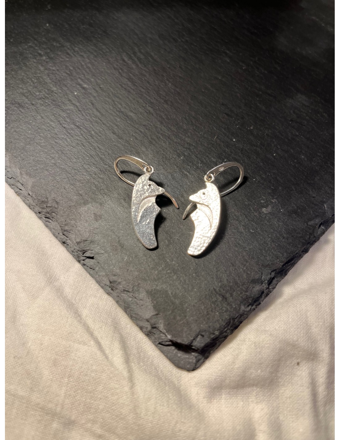 Pendients de plata de ley con un zorro y textura.