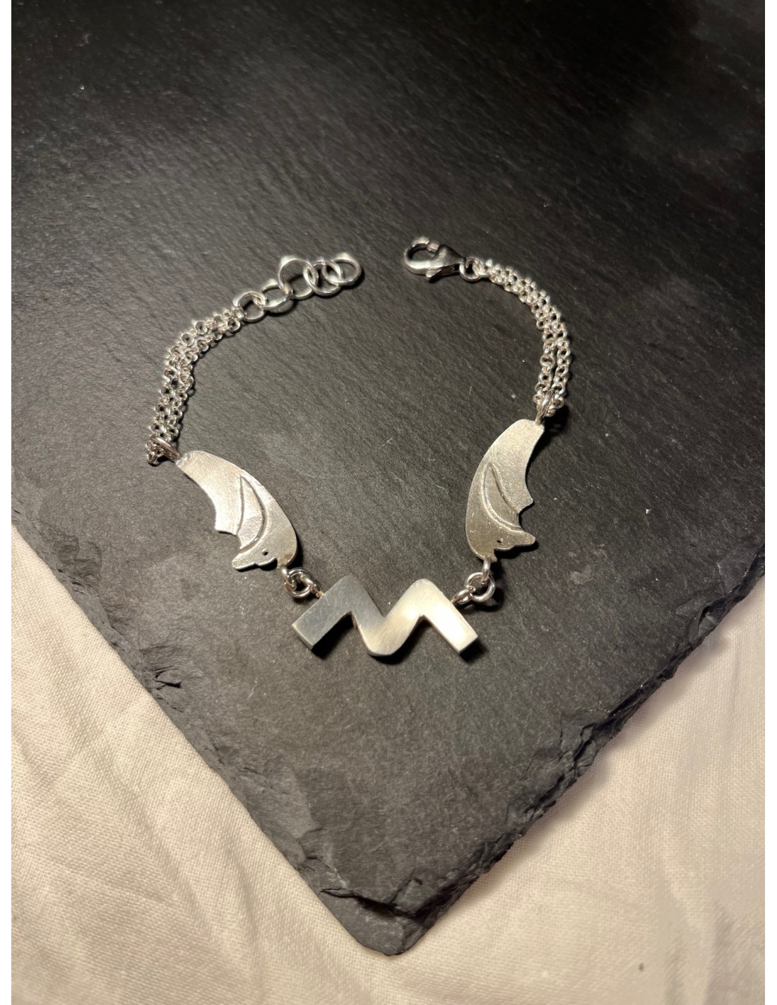 Pulsera de plata de ley con dos zorros y silueta del Pedraforca.