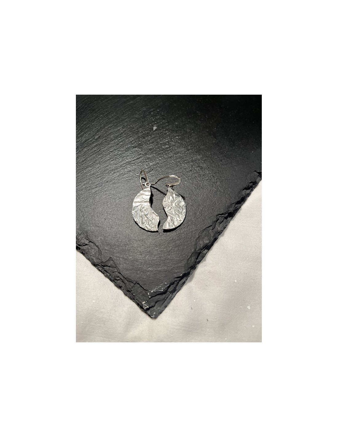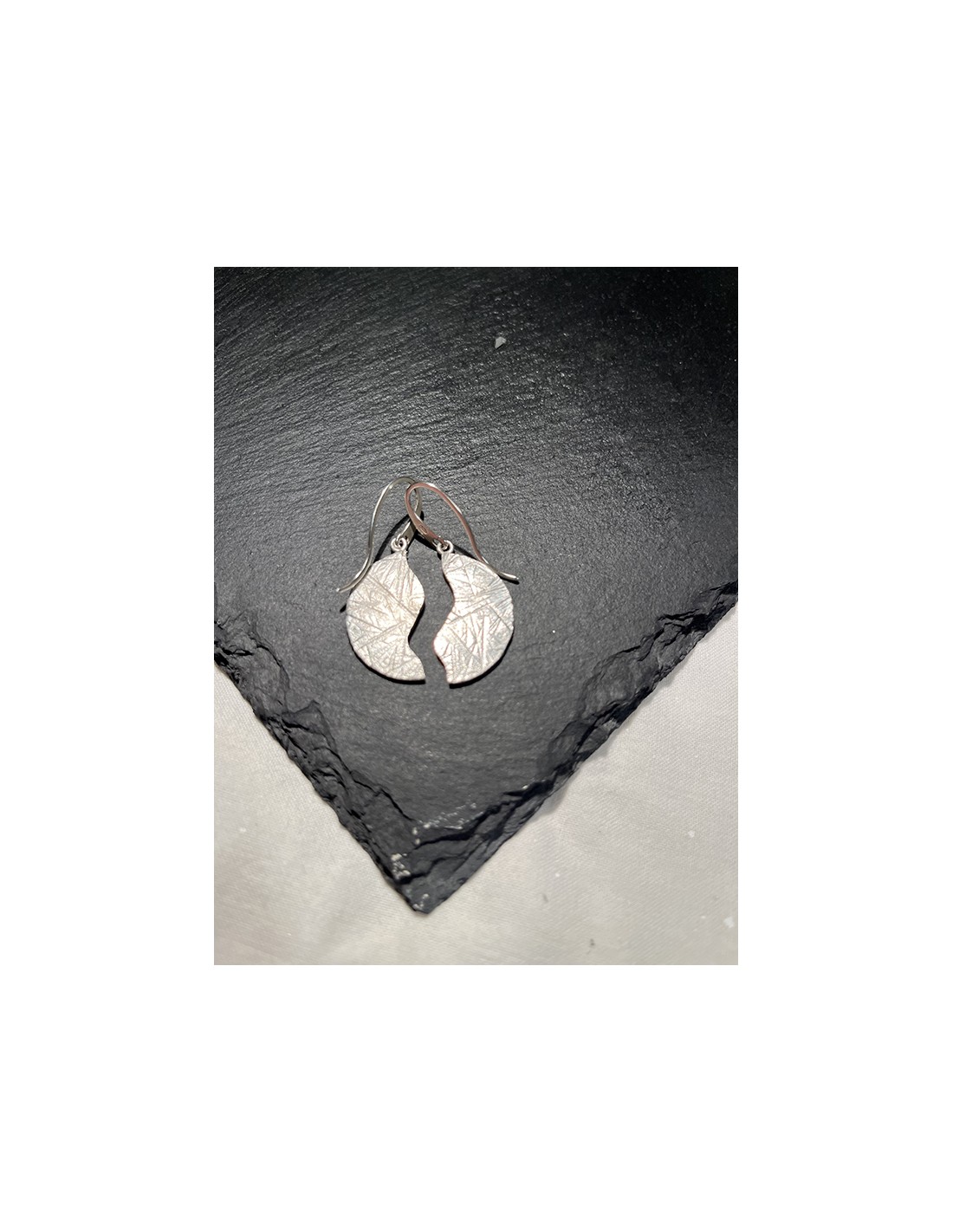 Colgante de plata oxidada de dos piezas con textura emulando a la corteza del árbol.